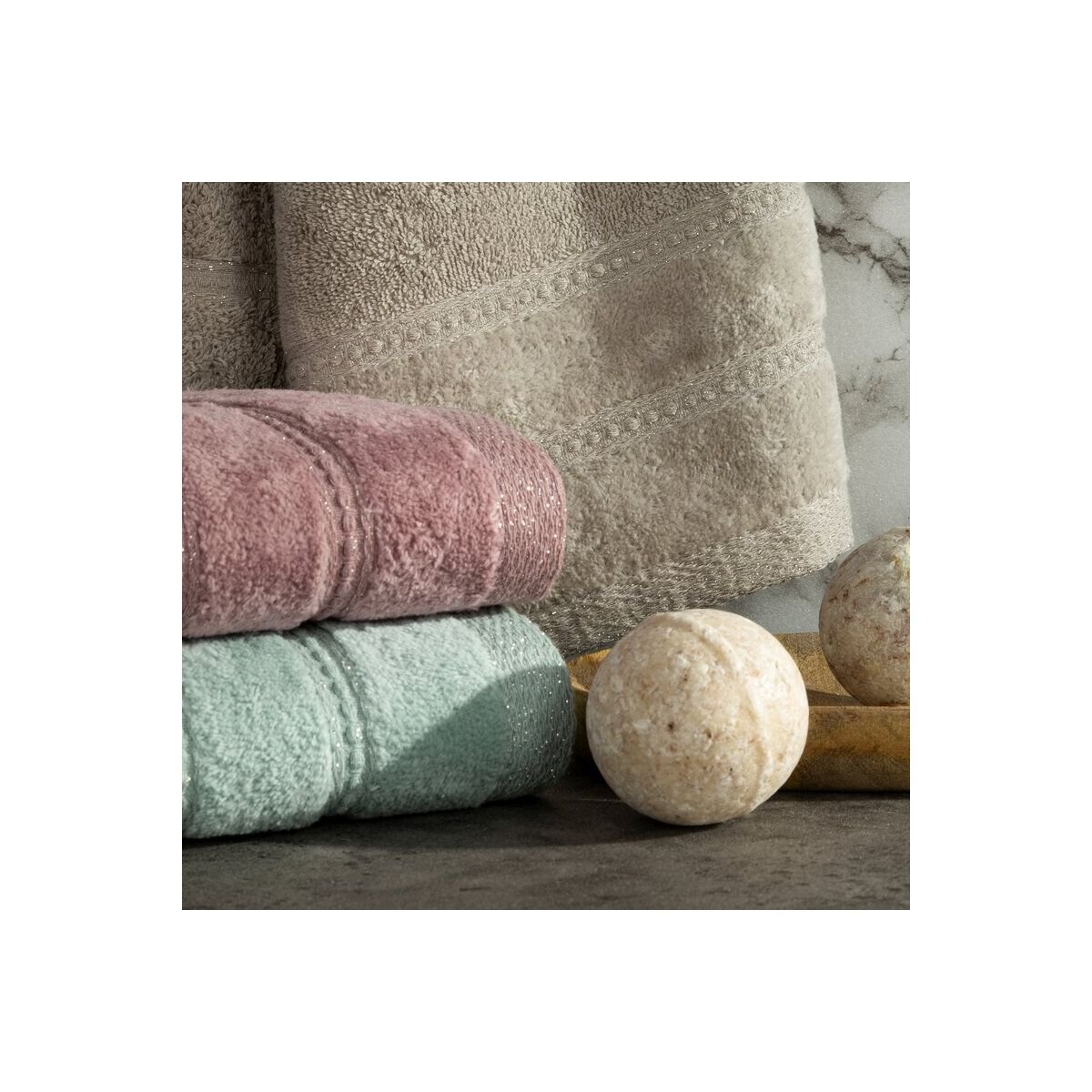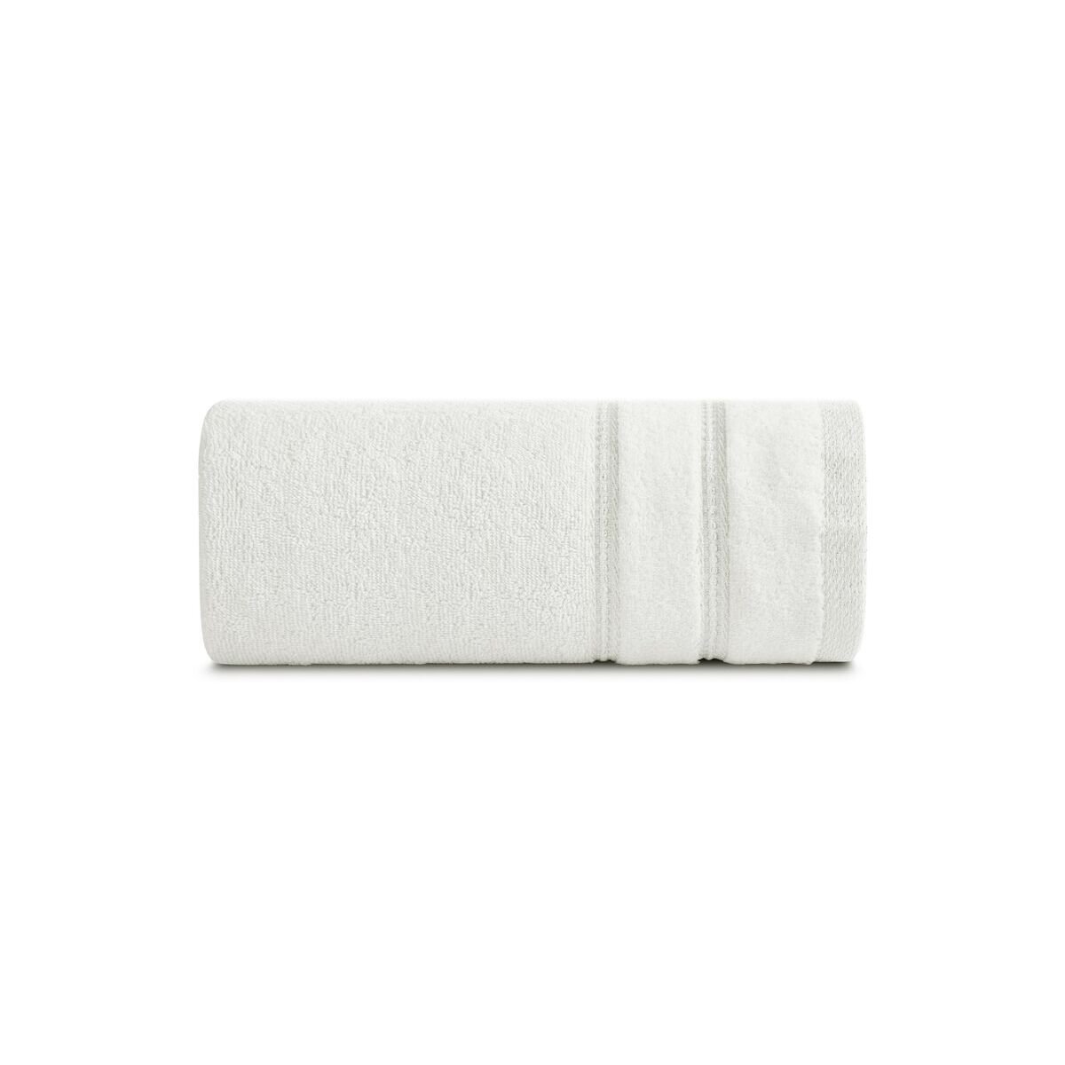 Klassikaline vannirätik, mis on valmistatud imavast puuvillafroteest. Rätikut kaunistab minimalistlik veluurääris koos metallniitaktsendiga. Mõõtmed: laius 30 cm, pikkus 50 cm, värv: kreemikas. Kaal: 500 GSM, Koostis: 100% puuvill, 99,2% puuvill, 0,8% metallniit. See luksuslik rätik ühendab endas funktsionaalsuse ja elegantse välimuse, olles suurepäraseks lisandiks igasse vannitoasisustusse.