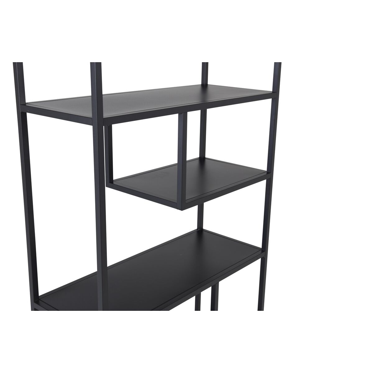 Staal riiul kaasaegses tööstuslikus disainis, valmistatud mustast pulbervärvitud terasest, millel on mitmed reljeefsed pinnad erinevatel kõrgustel. Mõõtmed: pikkus: 85 cm, laius: 35 cm, kõrgus: 188 cm. Vajalik on vähene kokkupanek.