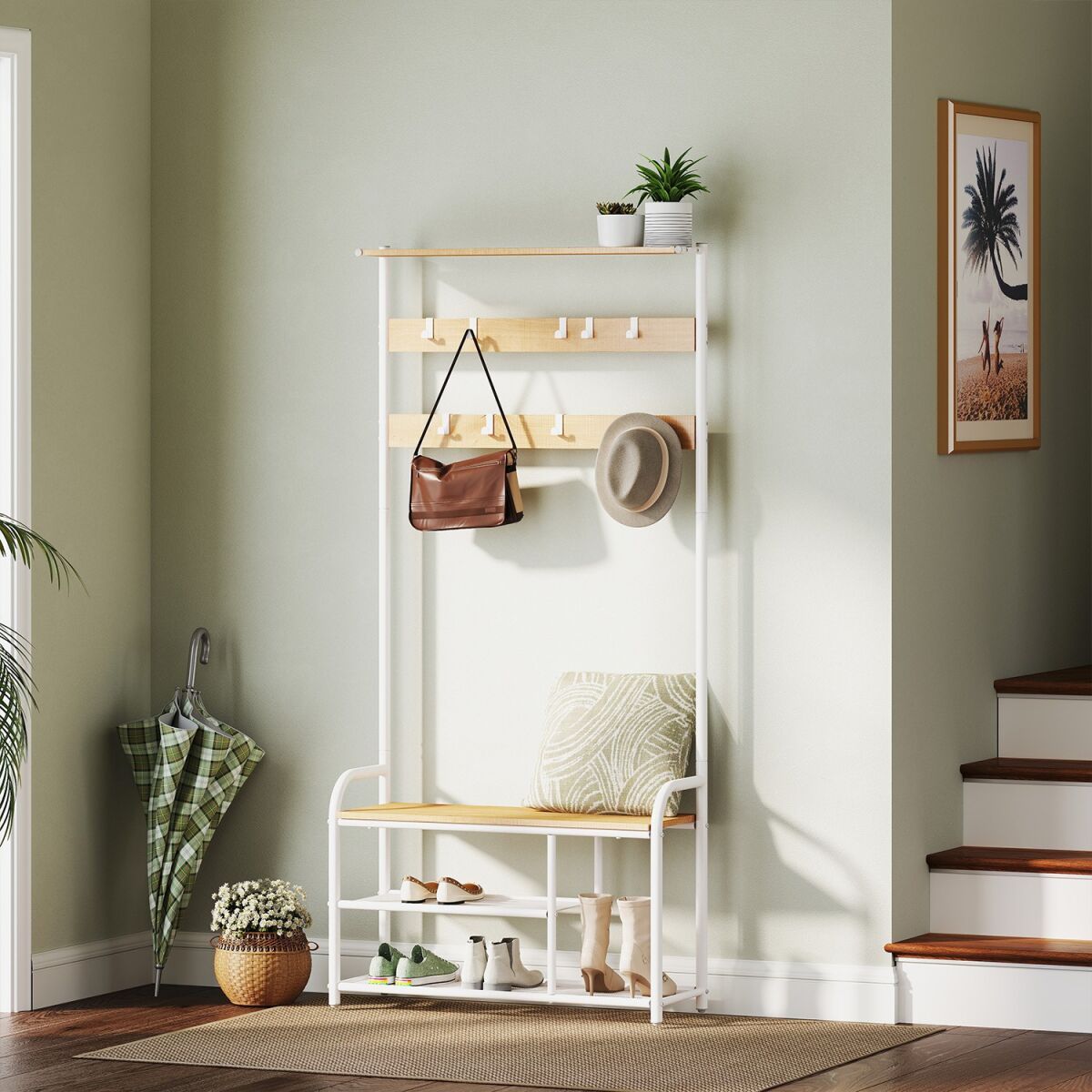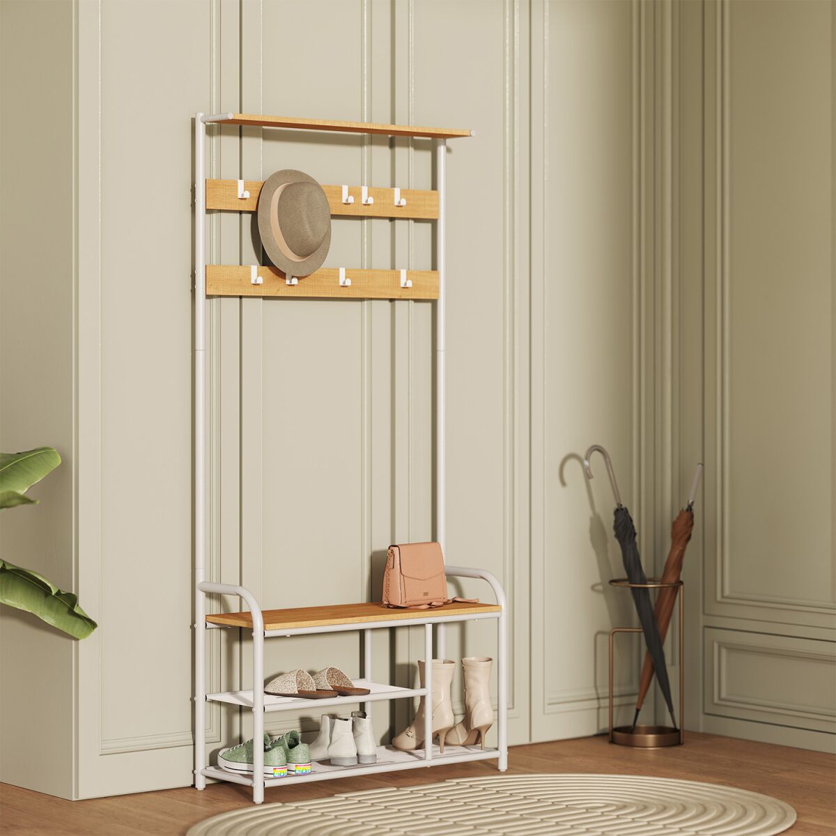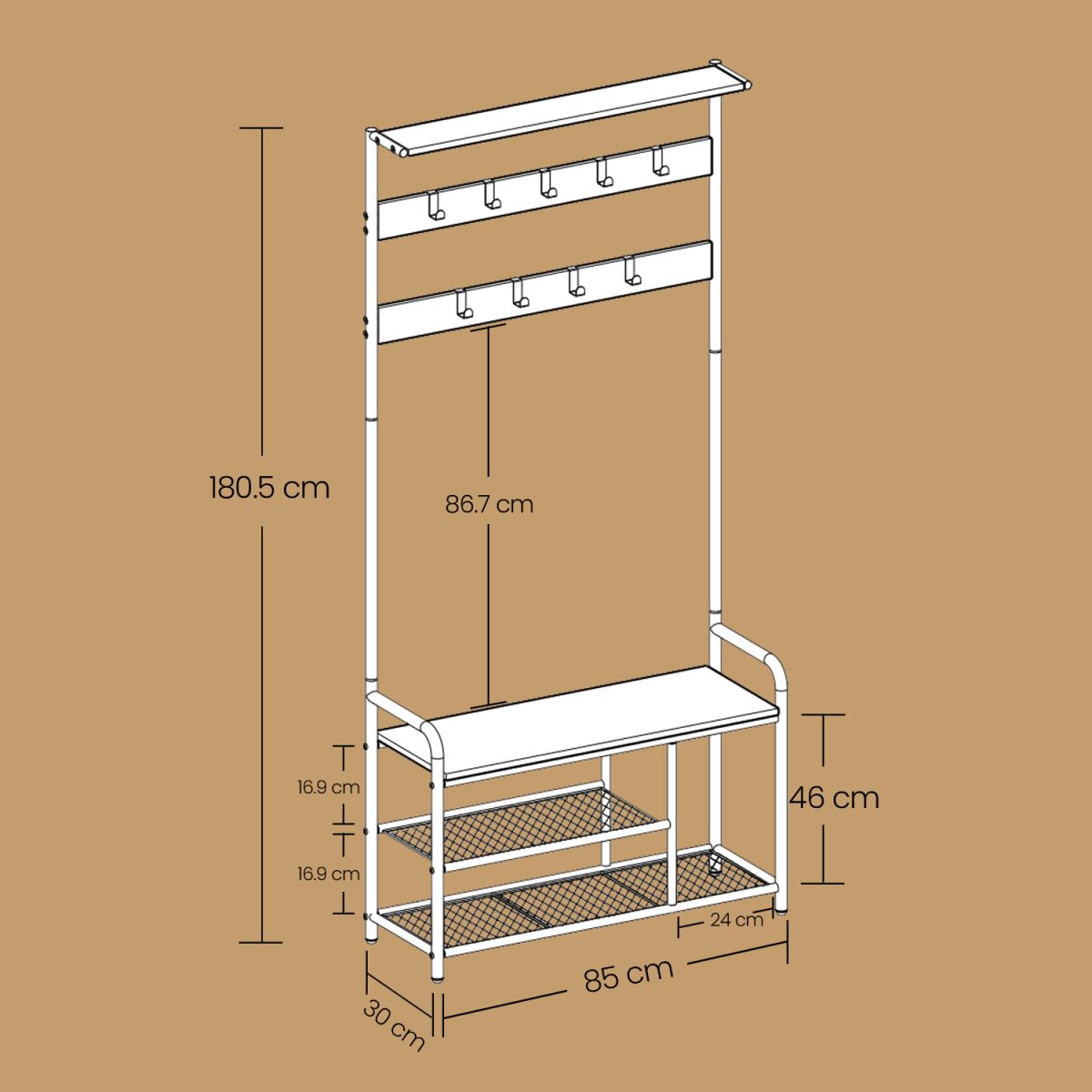 VASAGLE riidenagi, riidestange, esikunagi 9 eemaldatava konksu ja jalatsiriiuliga, sobib ideaalselt väikestesse korteritesse, tööstusdisain, vintage pruuni-mustana HSR409B01