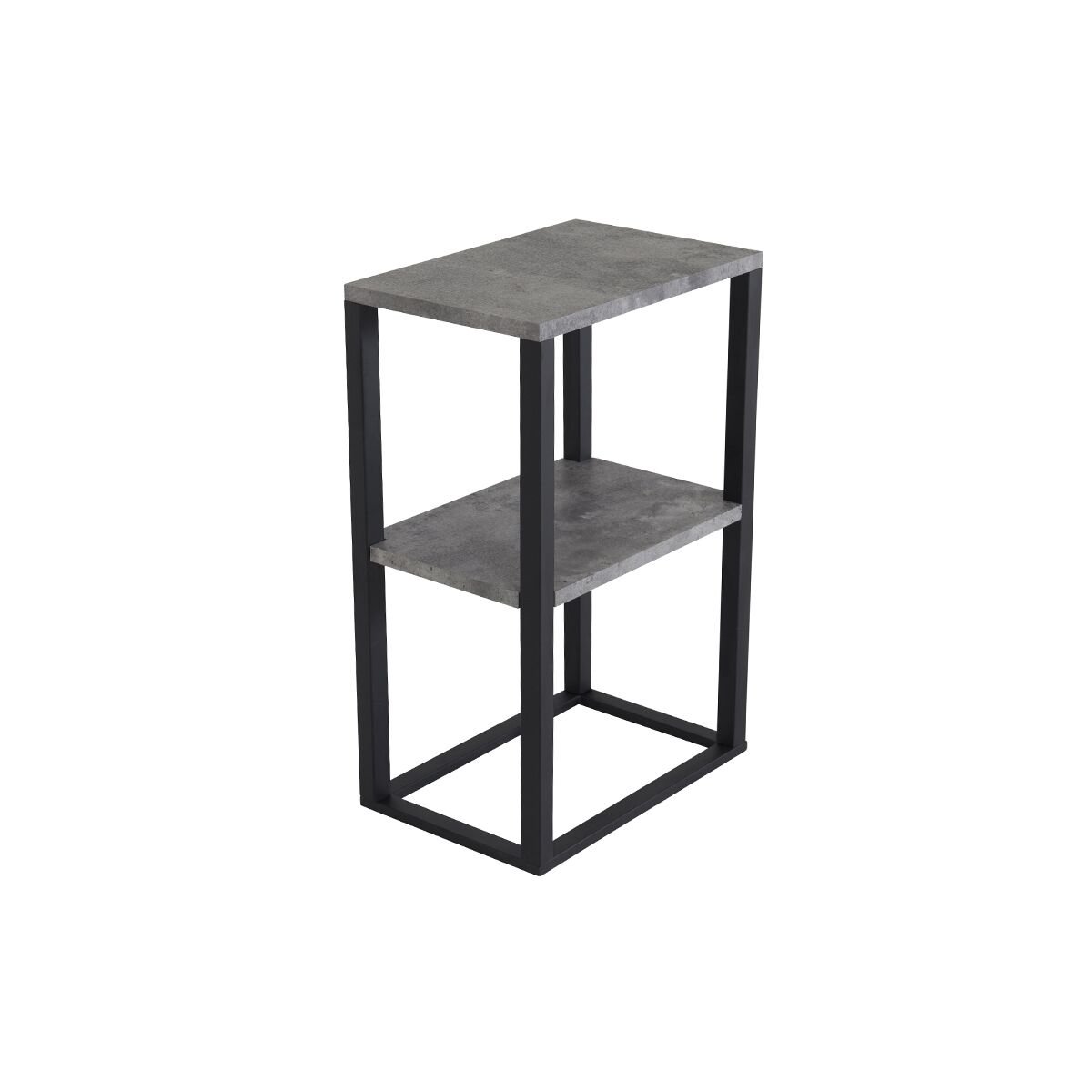 Tõstke oma eluruumide väljanägemist mitmekülgse ja šiki Rise öökapiga. Täiuslikult proportsioneeritud mõõtudega 45 x 30 cm, see stiilne must laud on moodsalt kujundatud ning sobitub sujuvalt igasuguse sisekujundusega. Hoolikalt valmistatud, see sisaldab kahte nutikat riiulit MDF-ist kaasaegse betooni imitatsioonviimistlusega, pakkudes küllaldaselt ruumi voodi või elutoa hädavajalike esemete hoiustamiseks ja väljapanekuks. Vastupidavad terasest jalad tagavad kestva stabiilsuse, samas kui kitsas struktuur loob peene ja voolujoonelise ilme.