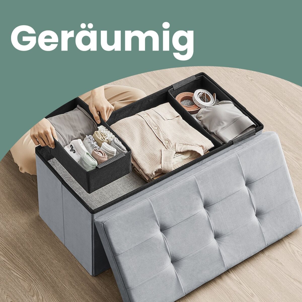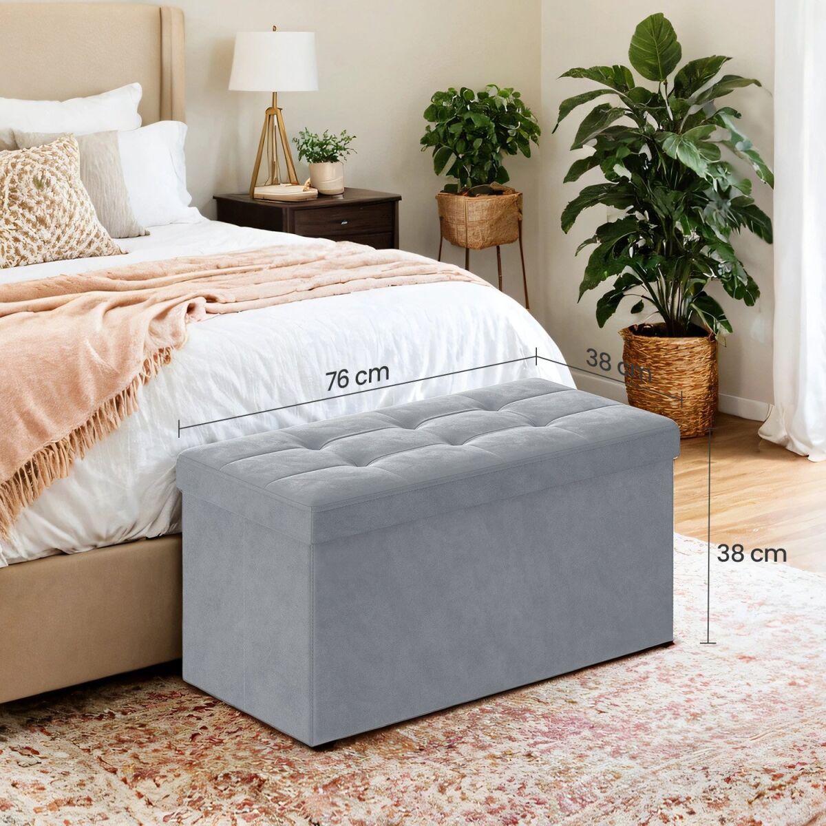 See elegantne ja mitmekülgne hoiutumba pakub nii stiili kui ka funktsionaalsust tänu oma stiilsele sametviimistlusele ja vastupidavale konstruktsioonile. Ideaalne lisand igasse koduruumi, toetab kuni 300 kg ja pakub suurt hoiuruumi 89-liitrise mahutavusega. Kokkupandav disain muudab selle lihtsasti liigutatavaks ja hoiustatavaks, samas kui helehall värv sobitub erinevate sisekujundusstiilidega. Sobib suurepäraselt elutuppa, magamistuppa ja esikusse, lisades mugavust ja elegantsi.