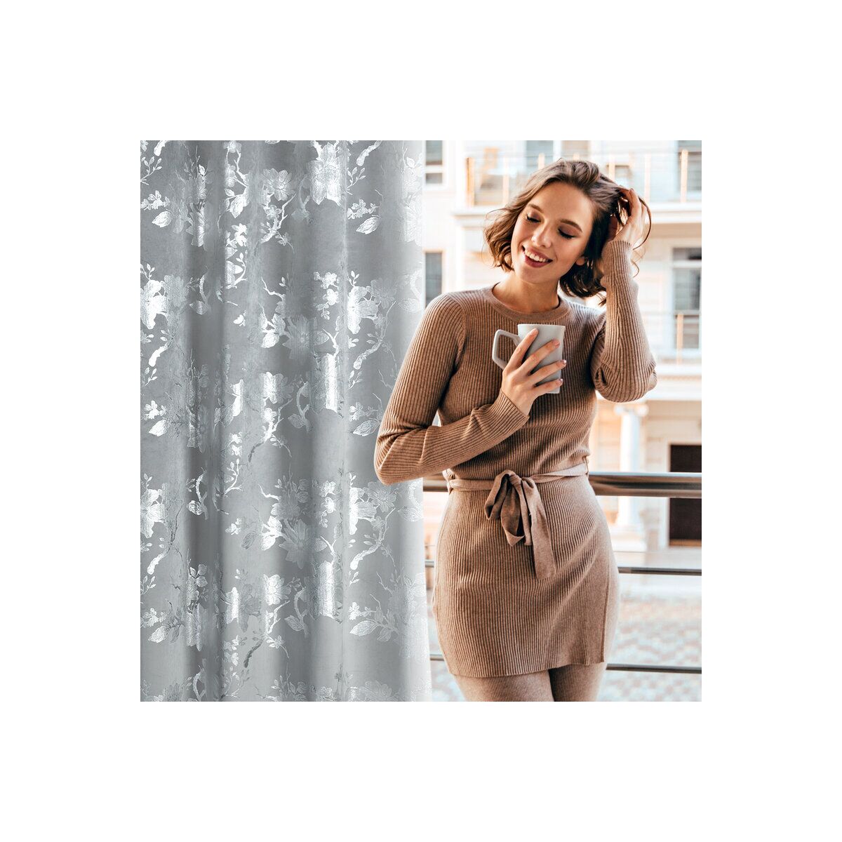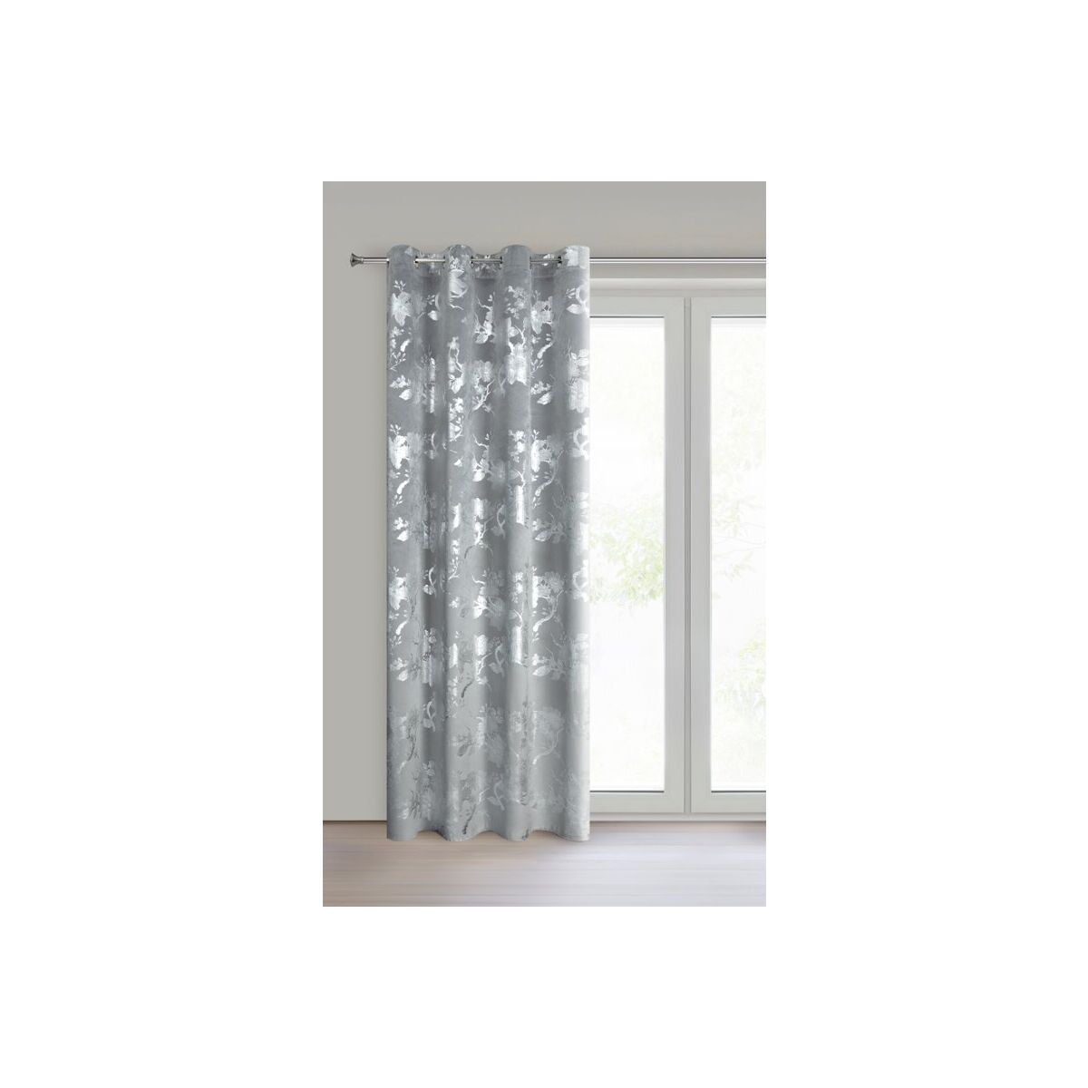 Sametist valmis kardin hõbedase särava mustriga