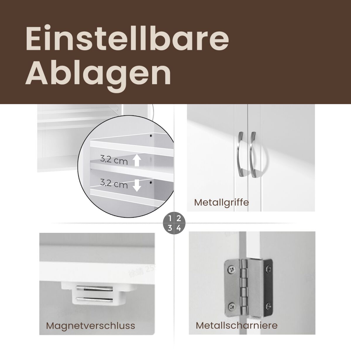 Kuidas ruumi vannitoas kokku hoida? Selle seinakapiga! Kas sinu vannituba on liiga väike, et mahutada lisameiki? Pole vaja muretseda! See seinakapp ei võta põrandapinda ja laiendab sinu vannitoa piiratud ruumi. Hoia kõik nahahooldustooted kapis ja võida segadus vannitoas. Kuidas hoida vannituba korras? Samuti selle seinakapiga! Kas oled väsinud mängimast peitust oma kammiga? Komistad pidevalt põrandal olevate dušigeeli pudelite otsa? Hoia kõik olulised asjad kenasti organiseerituna selles kahe reguleeritava riiuliga vannitoakapist (reguleeritavad kolmel erineval kõrgusel) ja ole alati vannitoas valmis. Lisaks hoiavad kaks ust kõik esemed puhtana ja tolmuvaba. Täiuslik!
