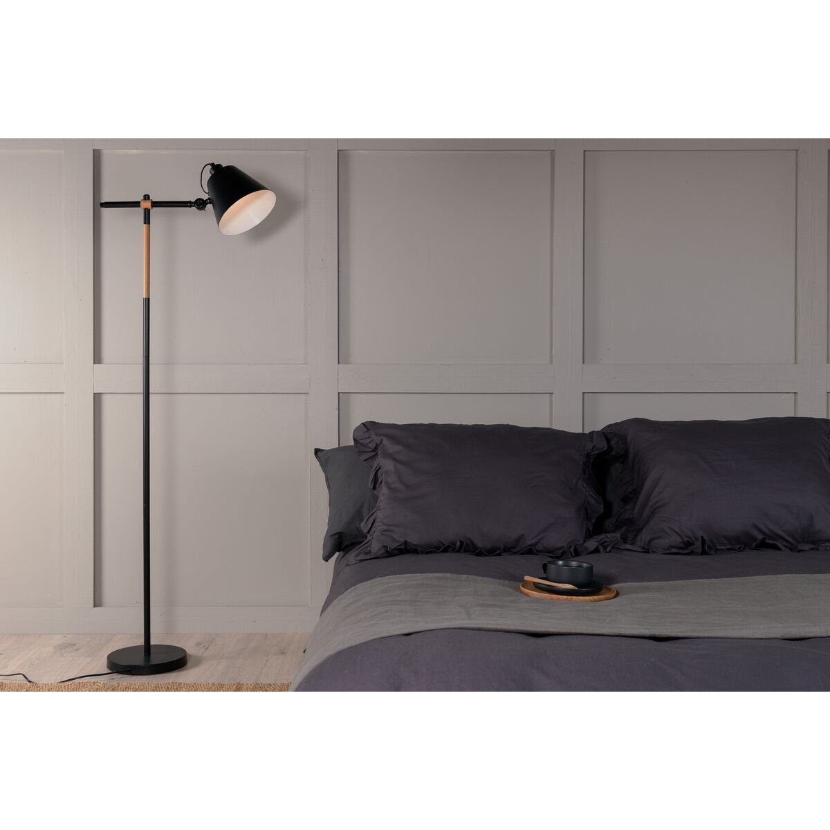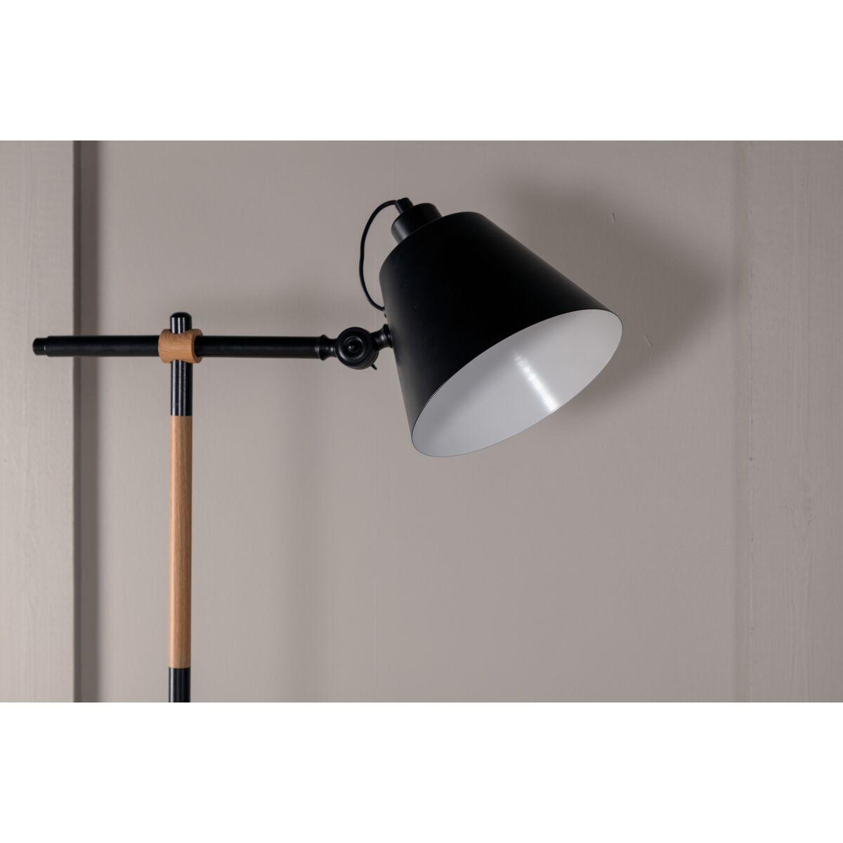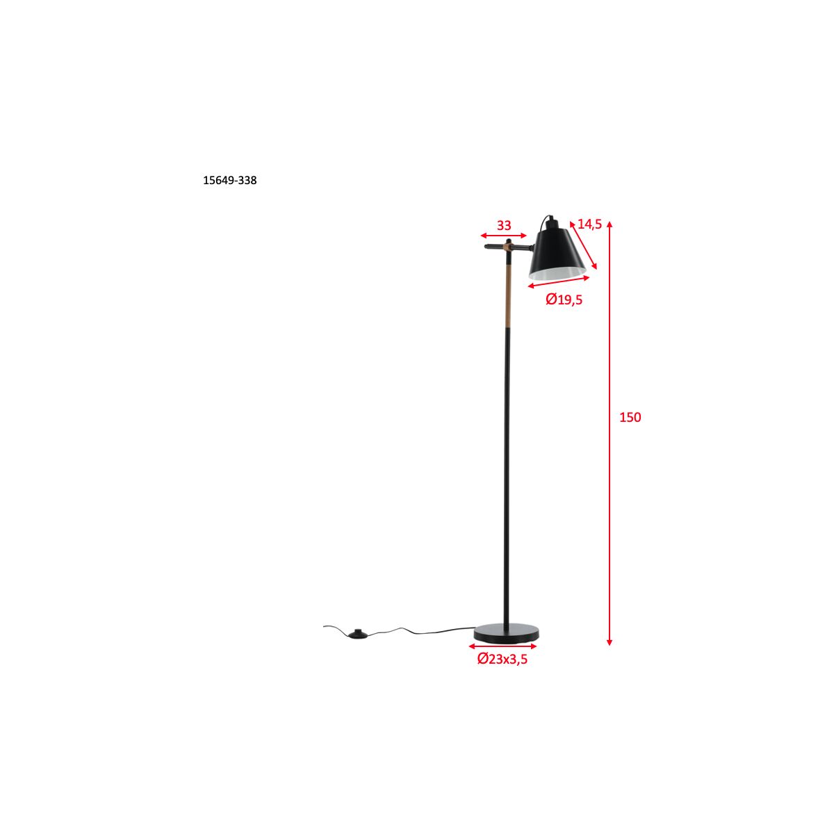 Must põrandalamp puu detailidega. Ekraani saab teie vajadustele vastavalt kallutada üles või alla. Sobib suurepäraselt lugemislambina või ilusaks sisekujunduselemendiks. Stiilne klassika!