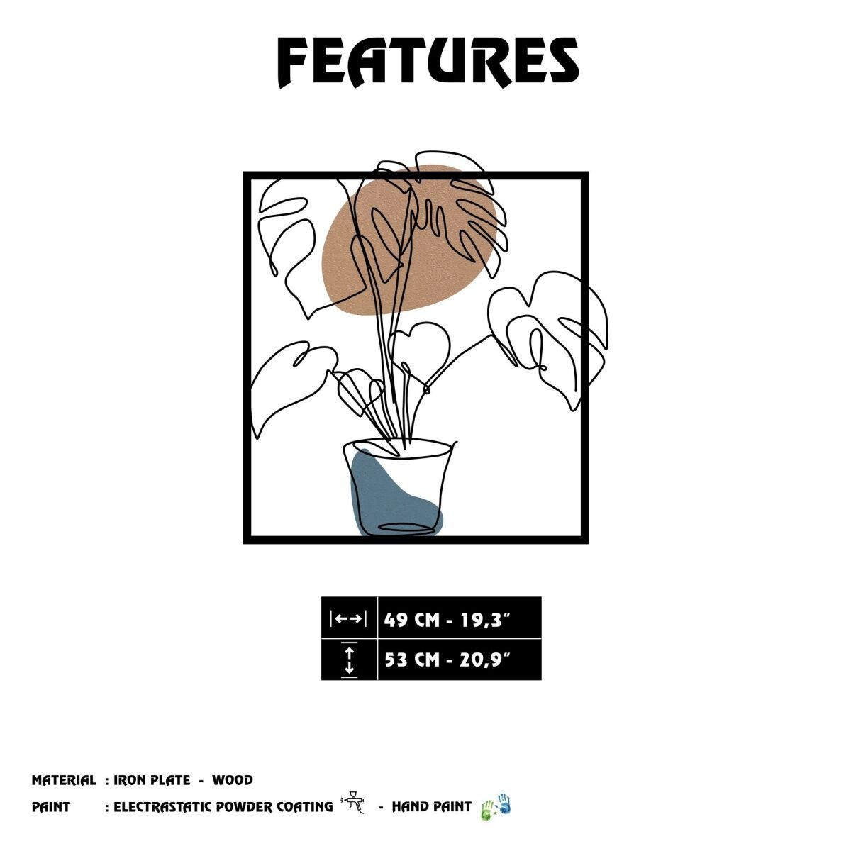 See vastupidav seinakaunistus on valmistatud kõrgekvaliteedilisest metallist (paksus: 1,20 mm) ja puidust (paksus: 3 mm), pakkudes ühtaegu nii modernset kui ka ainulaadset ilmet teie kodu seintele. Mõõtudega 49 x 53 cm sobib see suurepäraselt kaasaegsesse kodu sisekujundusse, luues tõeliselt erilise kunstseina. Ideaalne lahendus, kui otsite moodsat ja elegantset viisi oma kodu seinte kaunistamiseks.
