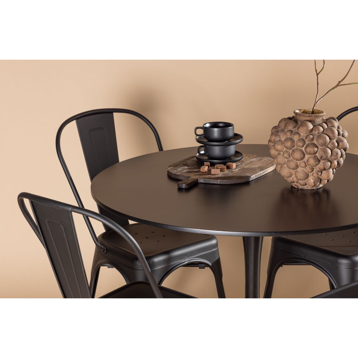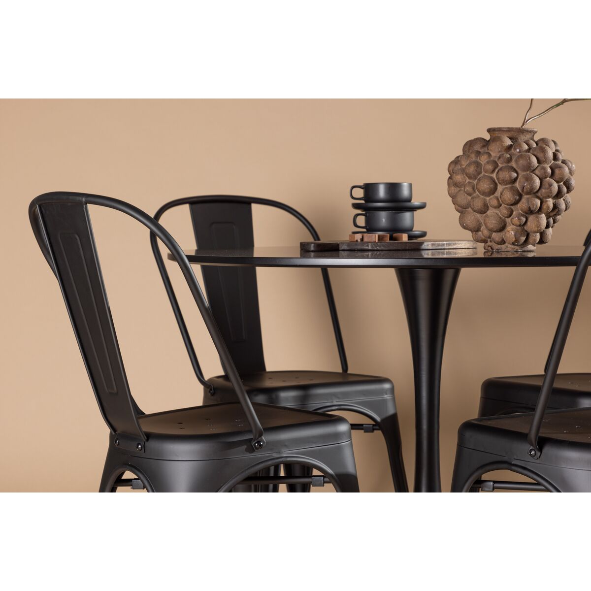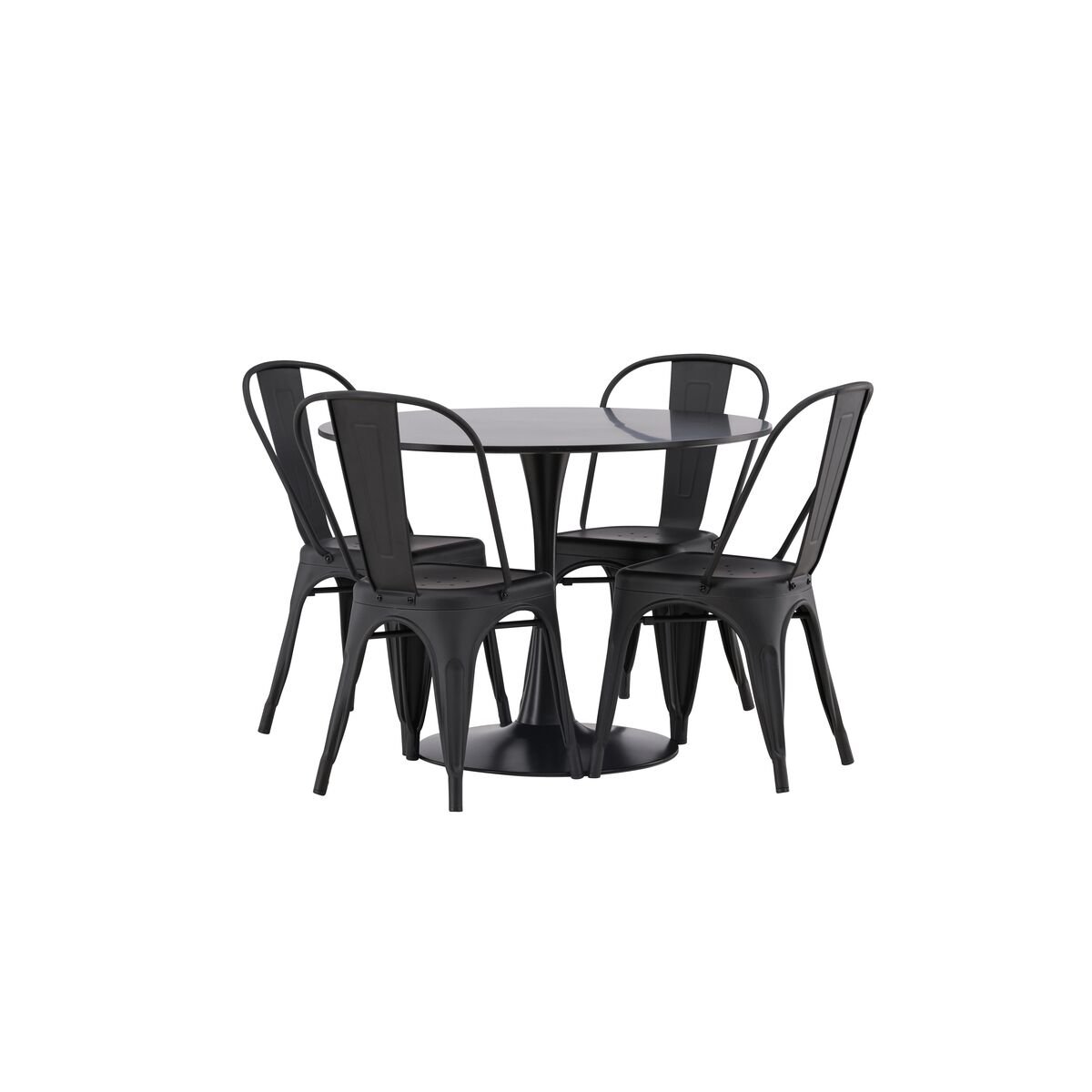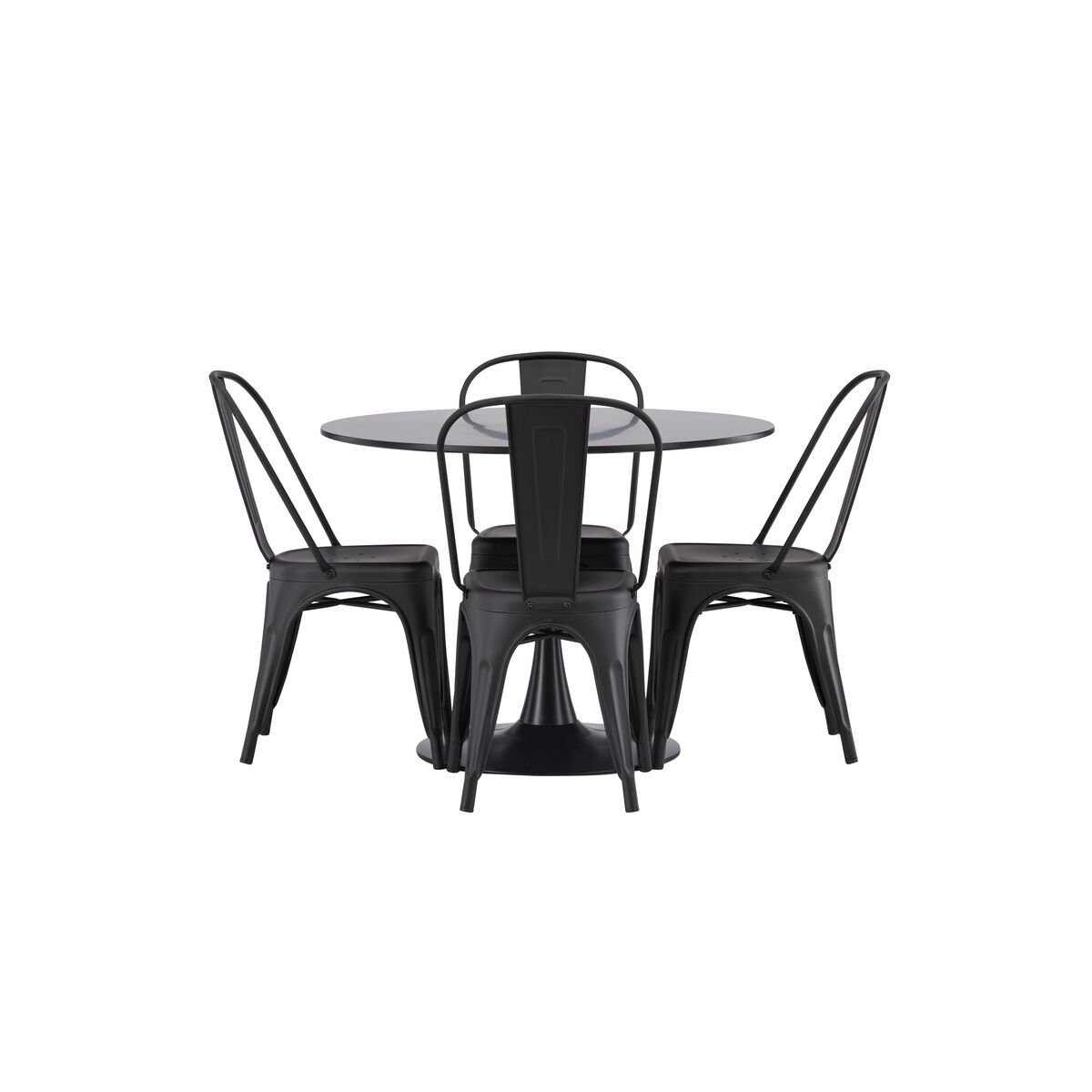 Tempe & Glade söögitoolide komplekt 4 tk must + ümmargune söögilaud ⌀100 must (GR23146)