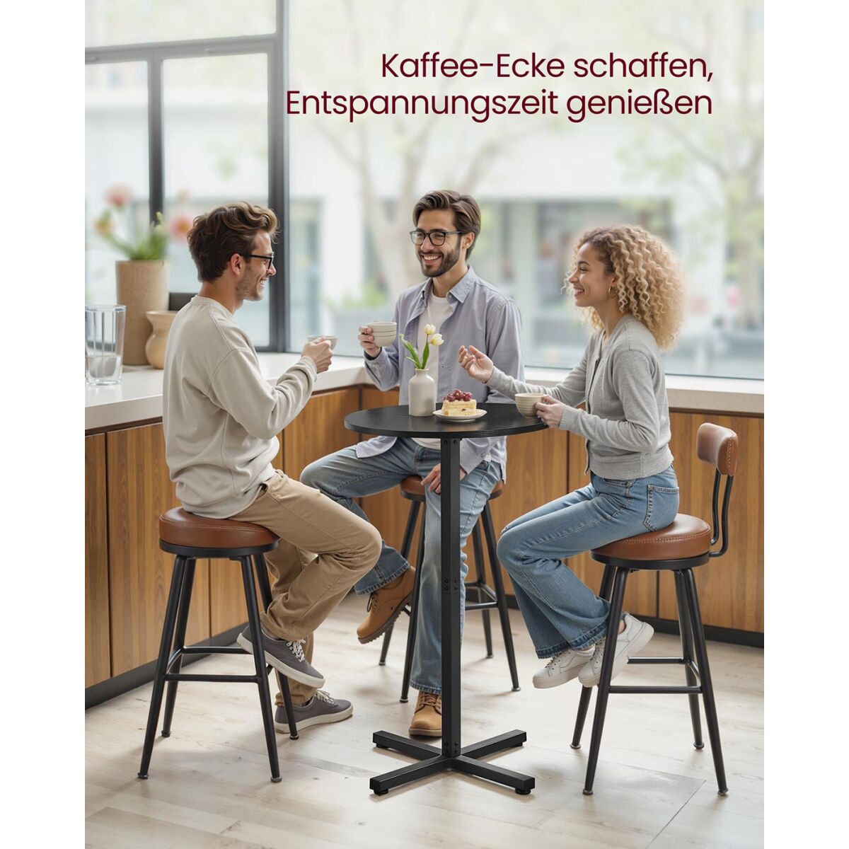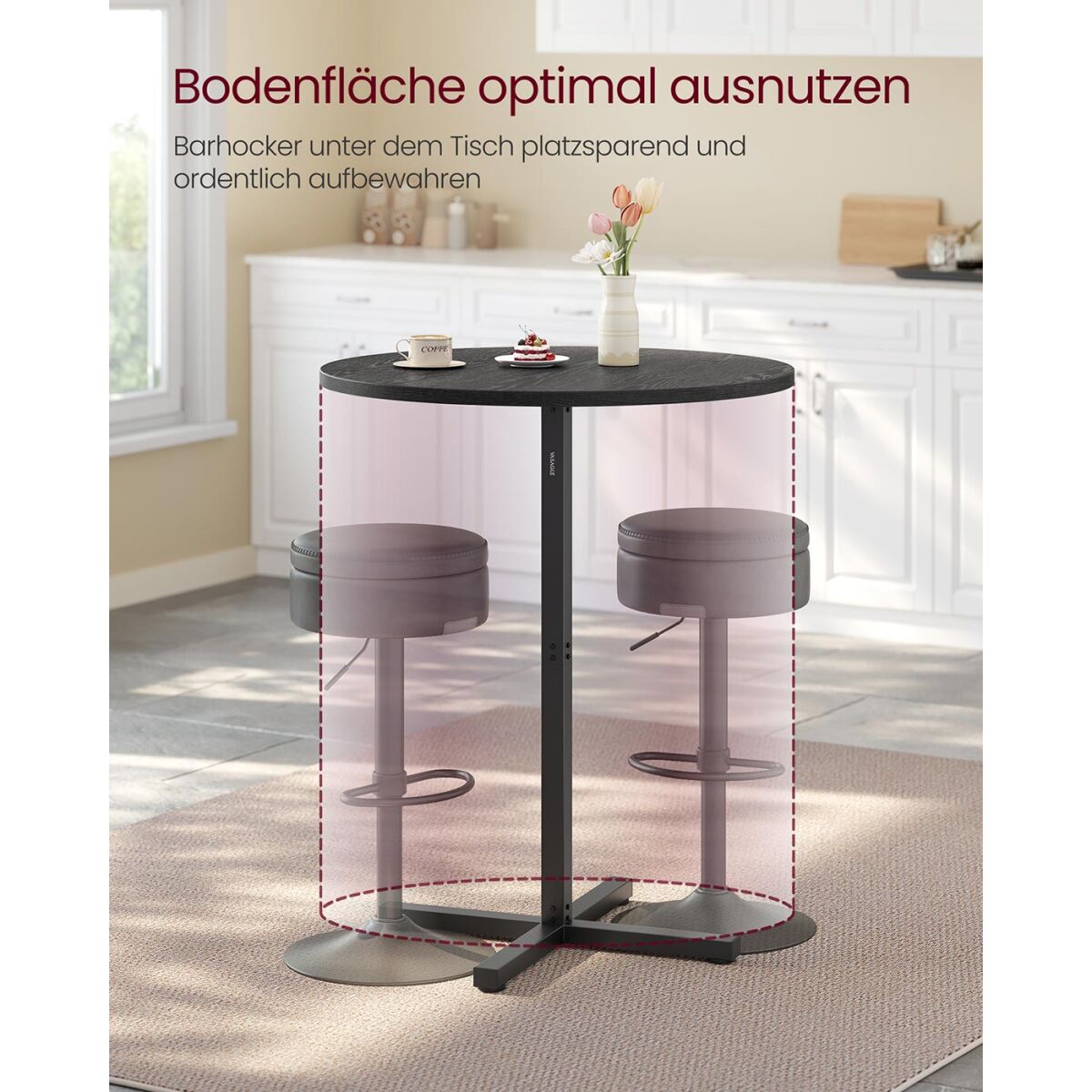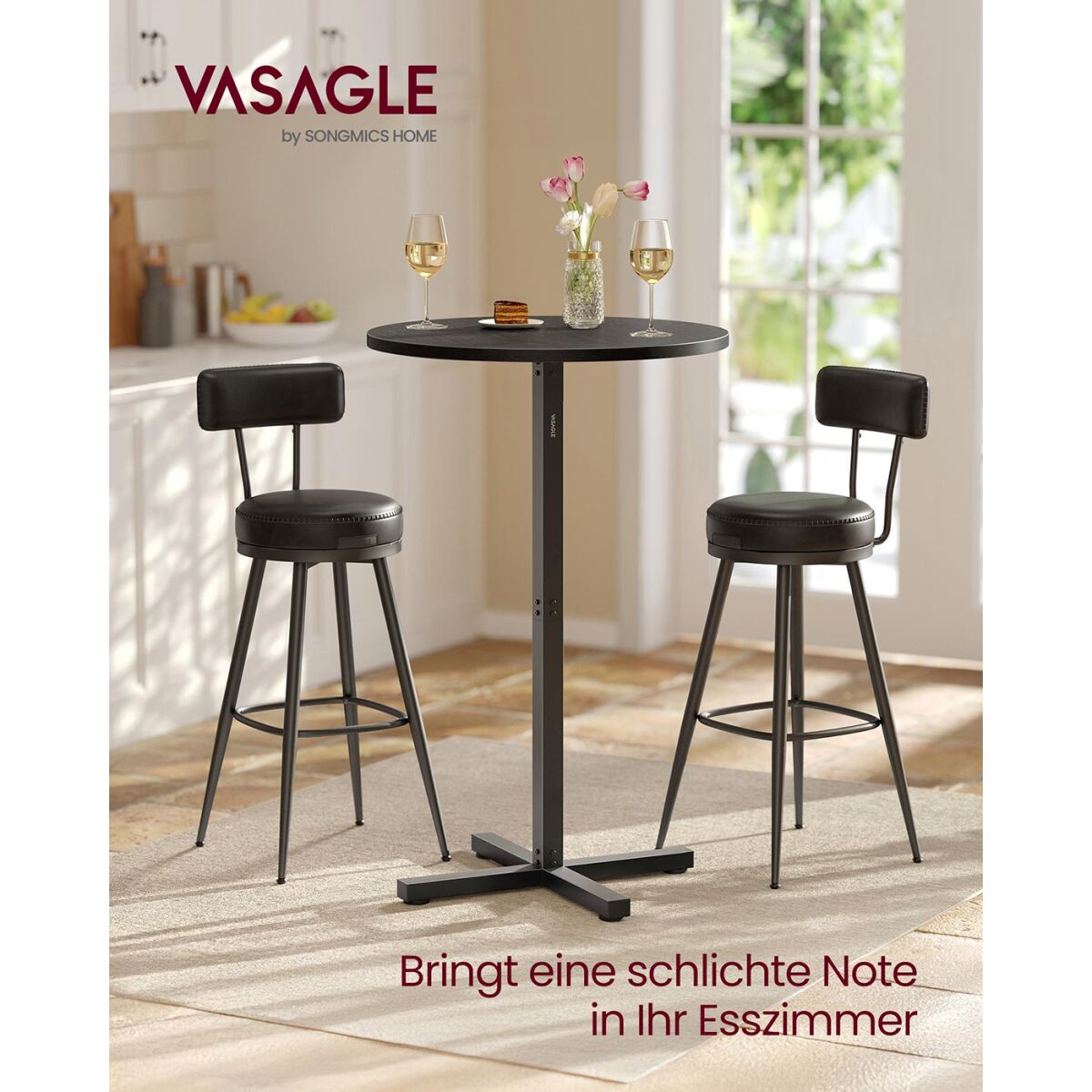VASAGLE baarilaud, seisulaud, bistroolaud ümmargune, siseruumides kasutada olev rõdulaud, väike kõrge laud kodubaarideks, elutuppa ja söögituppa, 60 x 60 x 104,5 cm, lihtne kokkupanek, eebenimust LBT361B01