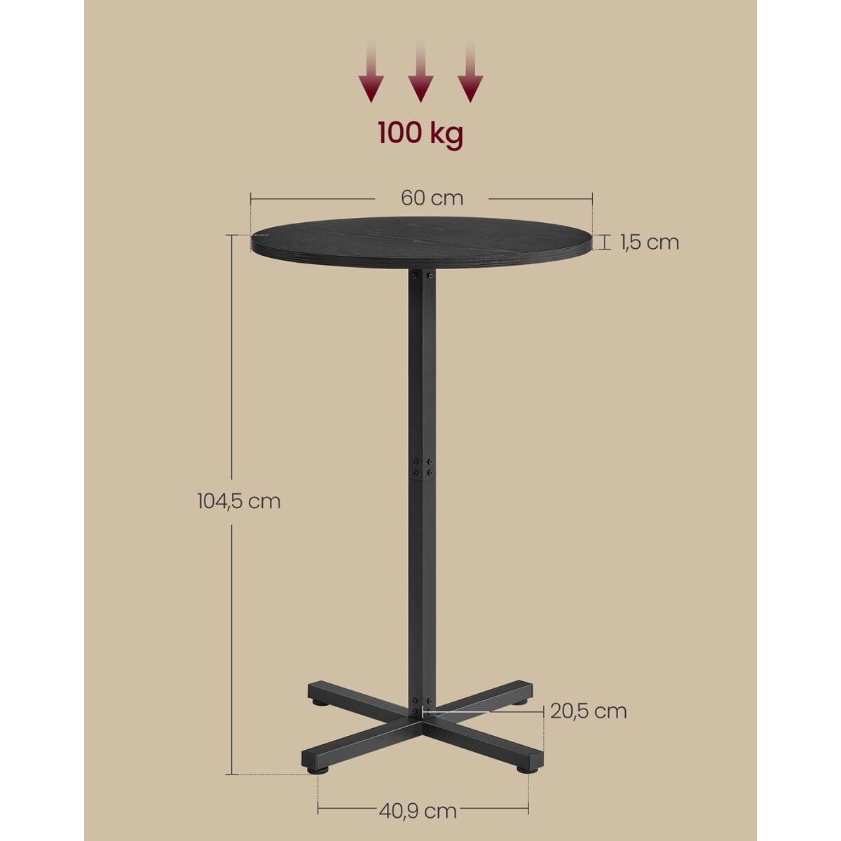 Ümmargune baarilaud 60 x 60 x 104,5 cm Ebony Black