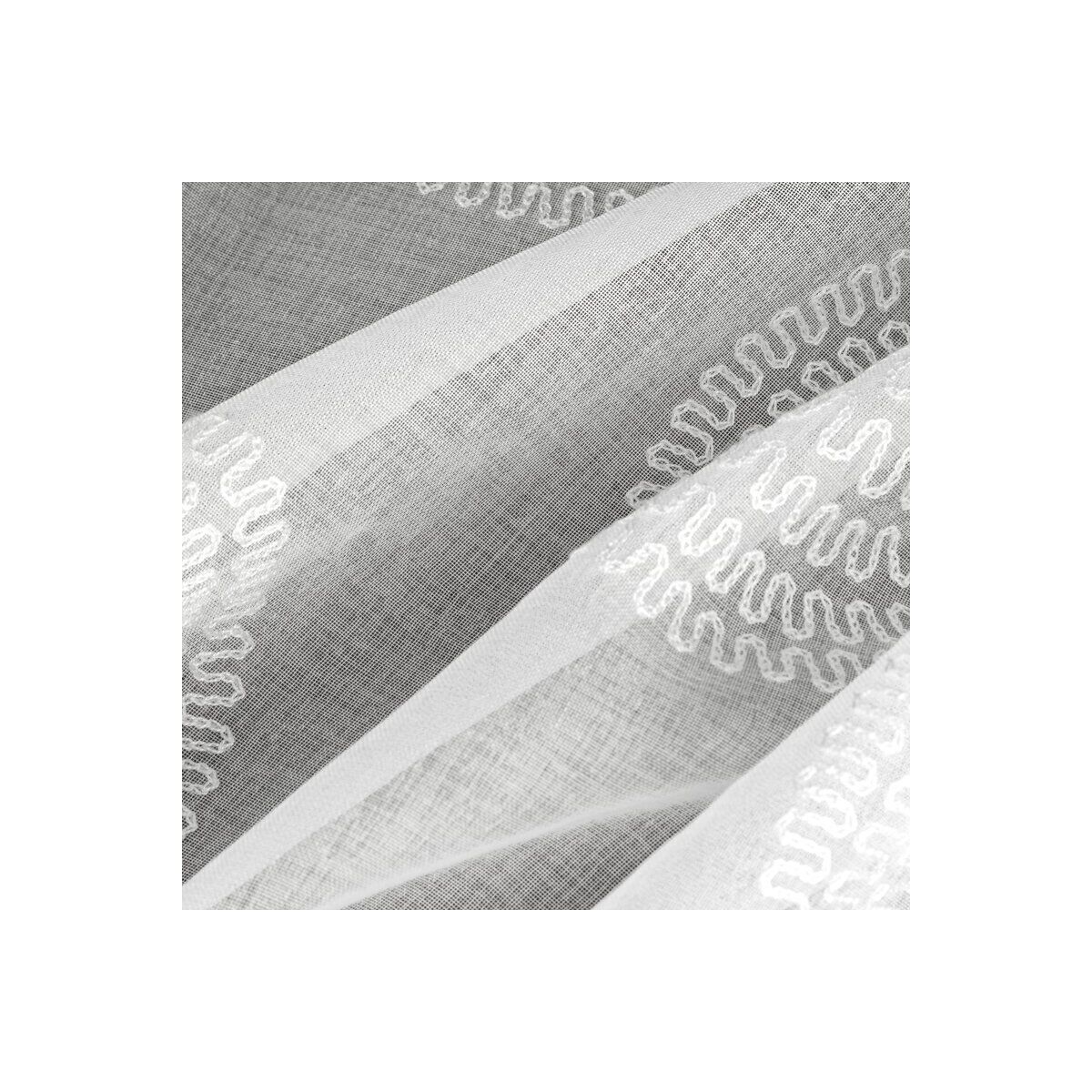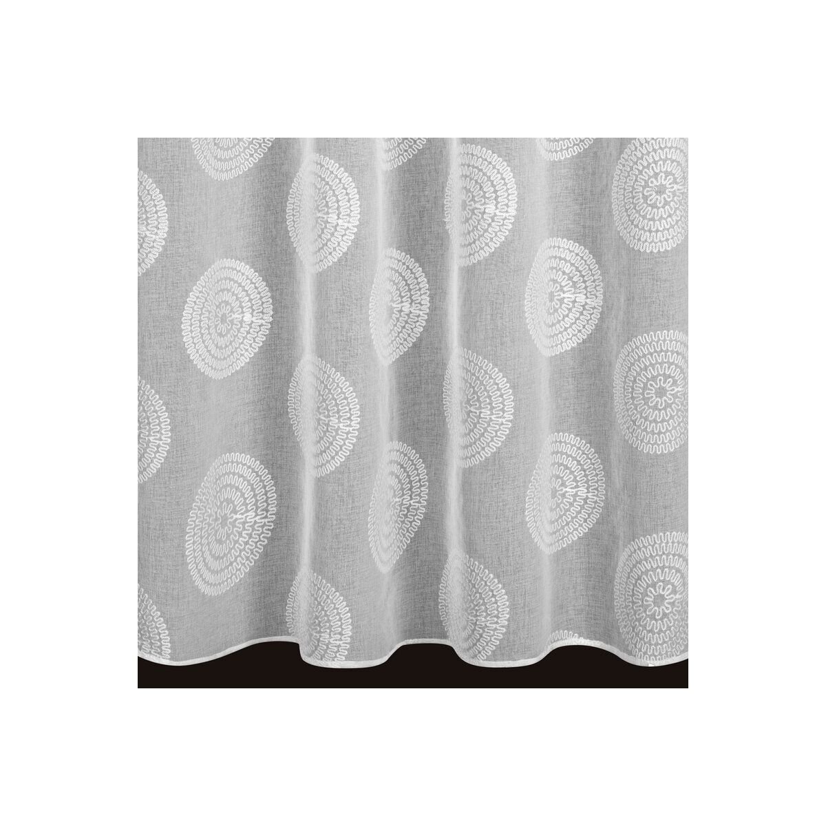 Valmis kardin kaunistatud tikanditega. Laius: 140 cm, pikkus: 250 cm, värv: valge. Materjali kaal: 80 GSM. Koostis: 100% polüester.
