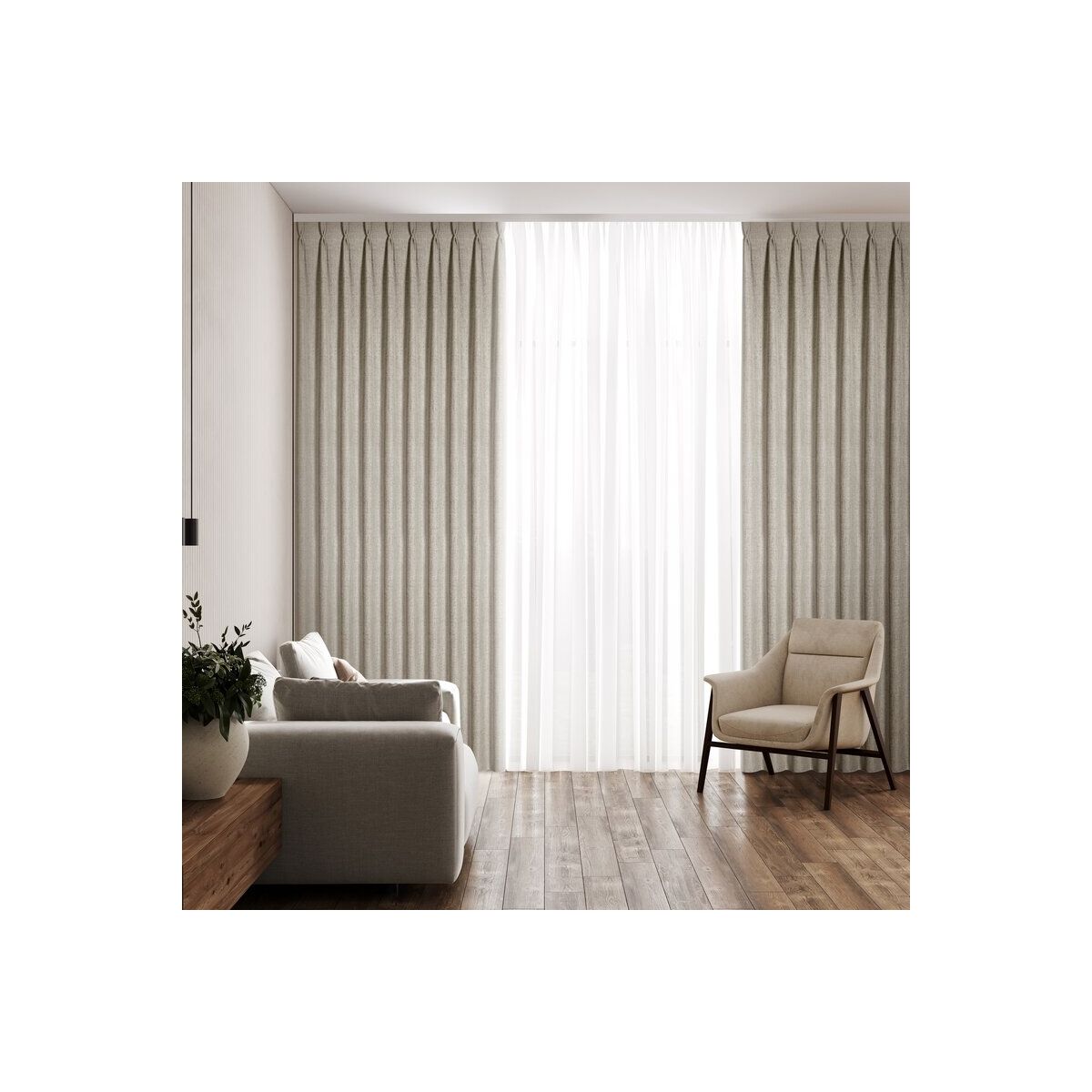 See eco-stiilis valmiskaardin pakub elegantset hele beeži tooni, mis sobib mitmesuguste interjööridega. Professionaalselt valmistatud 100% polüestrist, raskusega 205 GSM, tagades vastupidavuse ja luksusliku langevuse. Suurepärase mõõduga 210 cm laiuses ja 270 cm pikkuses, pakkudes akendele täiuslikku katvust ja privaatsust. Ideaalne kodu kaunistamiseks, säilitades samas loomuliku ja peene välimuse.