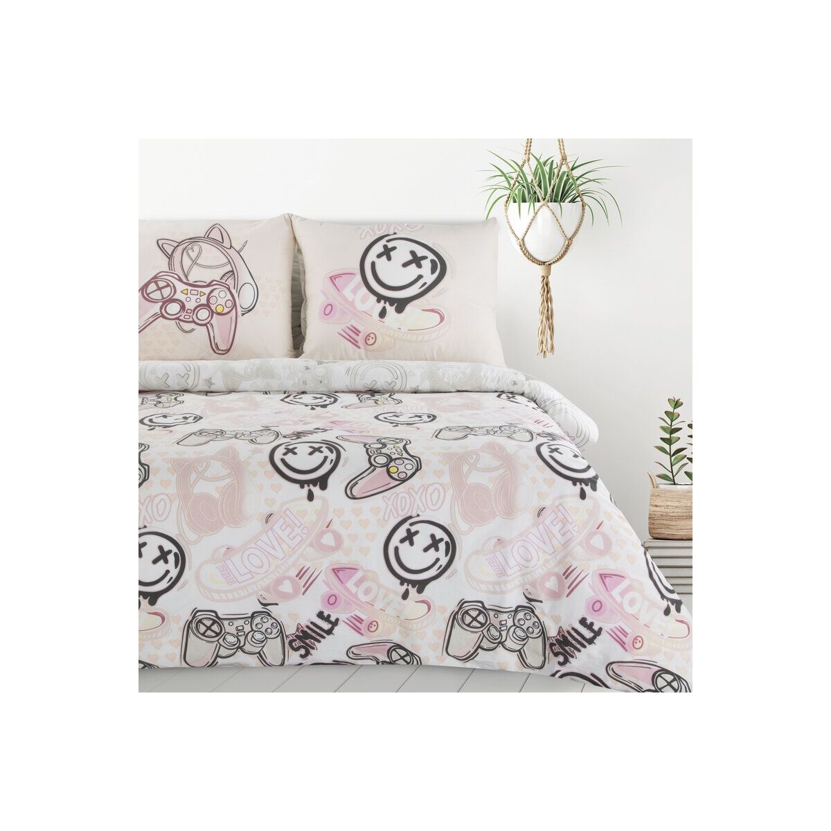 Puuvillane satiinist trükitud voodipesukomplekt, laius: 140 cm, pikkus: 200 cm, värv: beež, 125 GSM, koostis: 100% puuvillane satiin