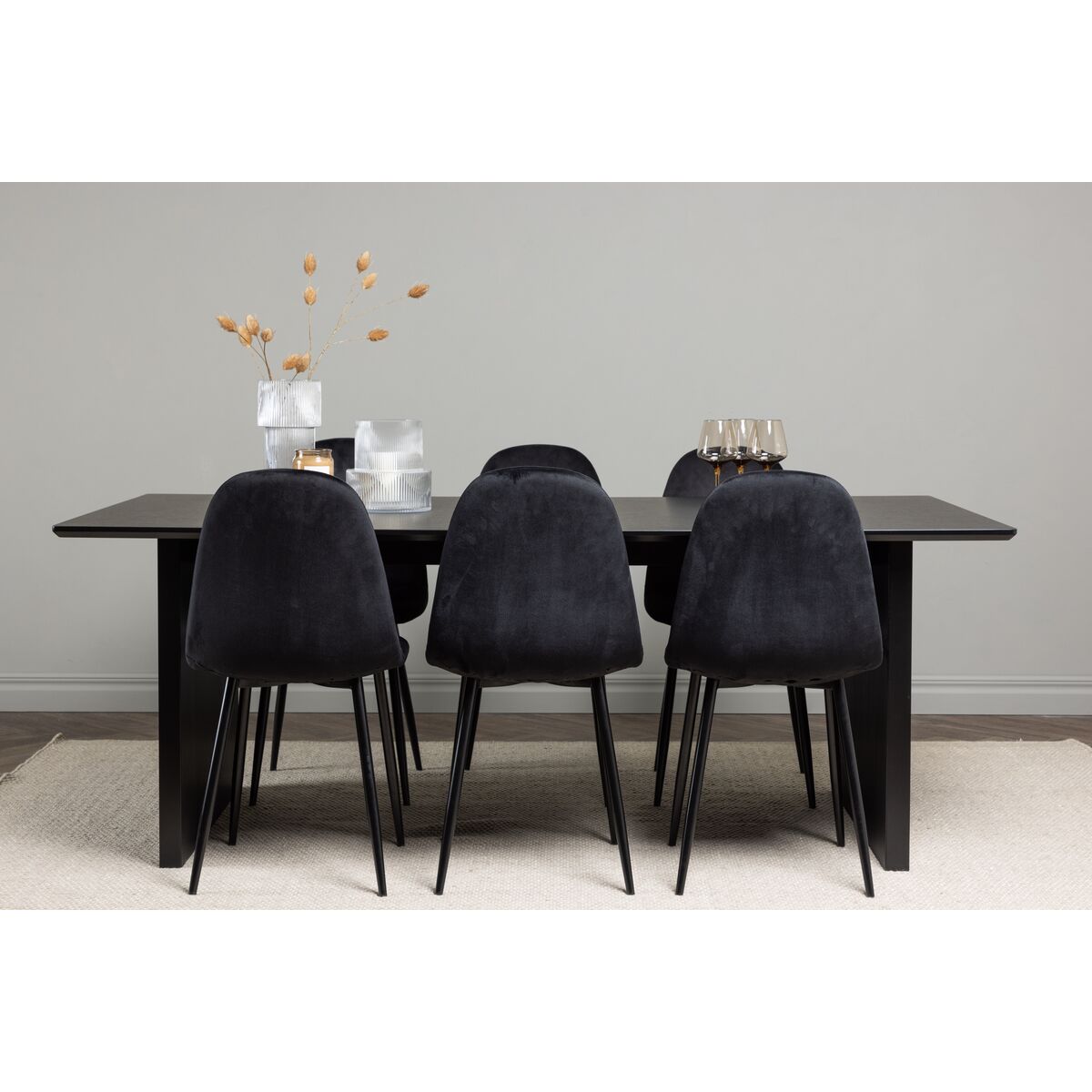 Polar & Astrid söögitoolide komplekt 2 tk must + ristkülikukujuline söögilaud 200 x 90 must (GR23528)