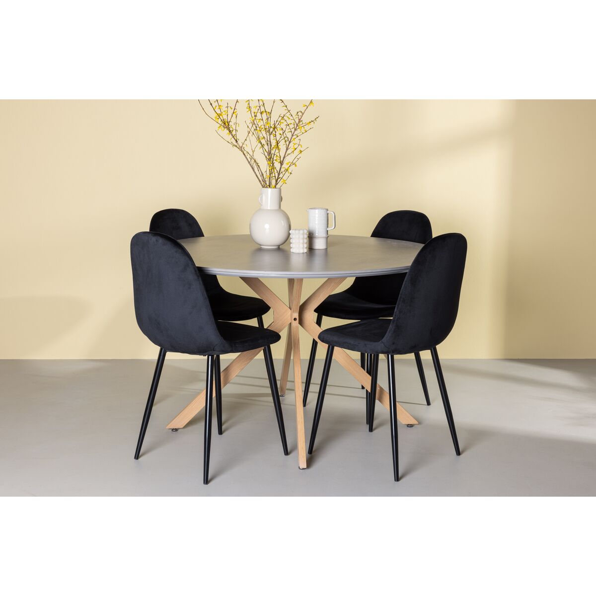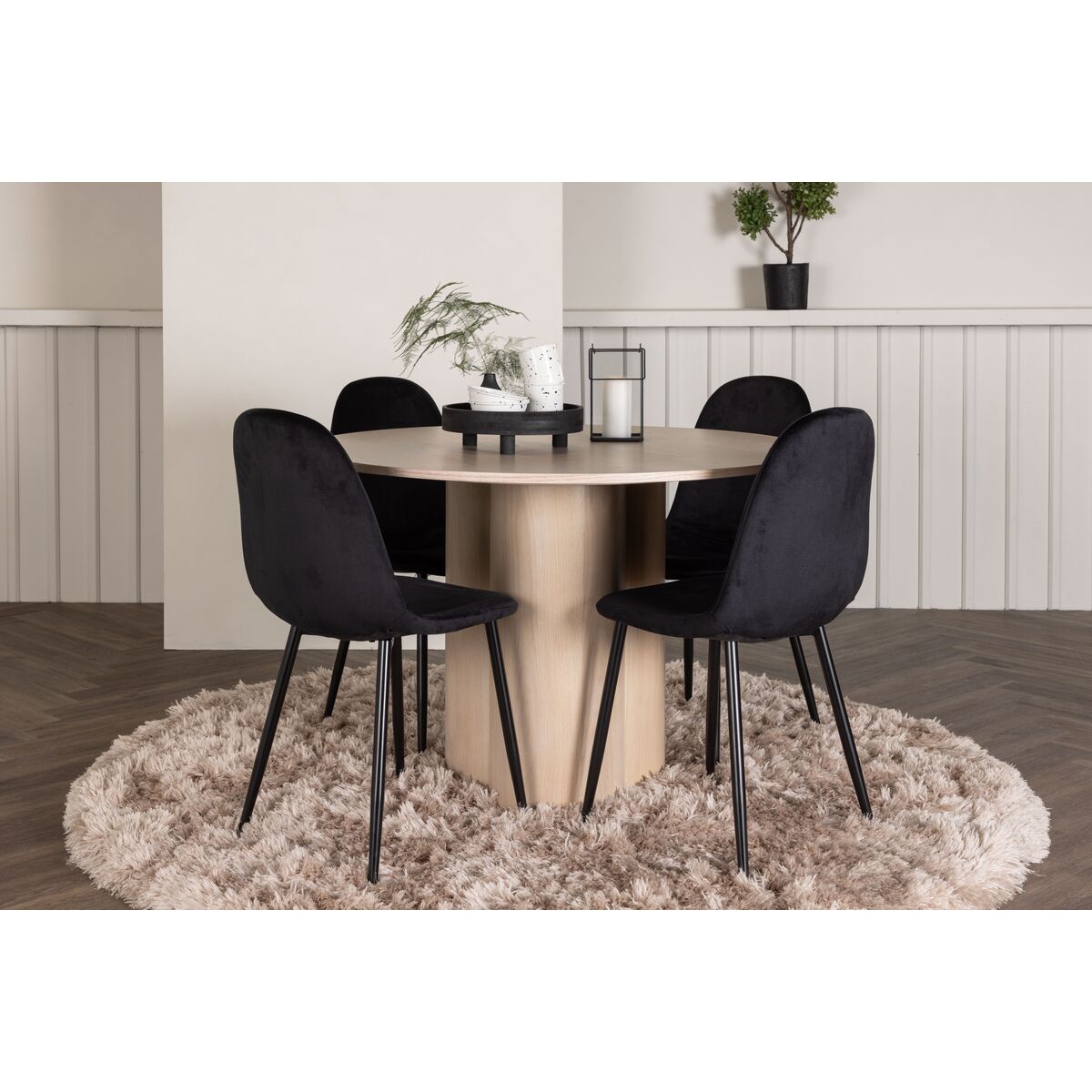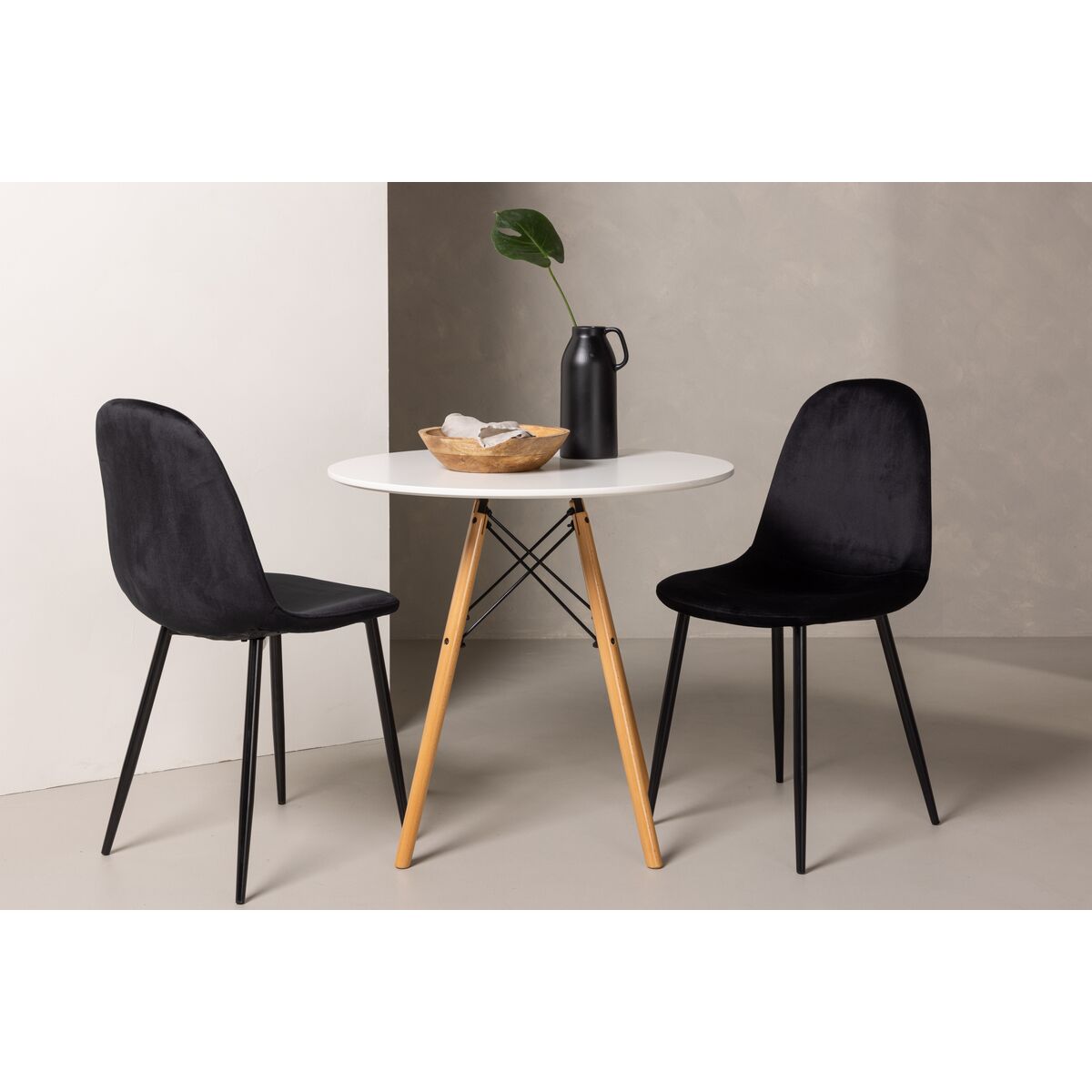 Polar & Plaza söögitoolid 2-pakk Must + Ümmargune söögilaud ⌀100 Valge pesu (GR24479)