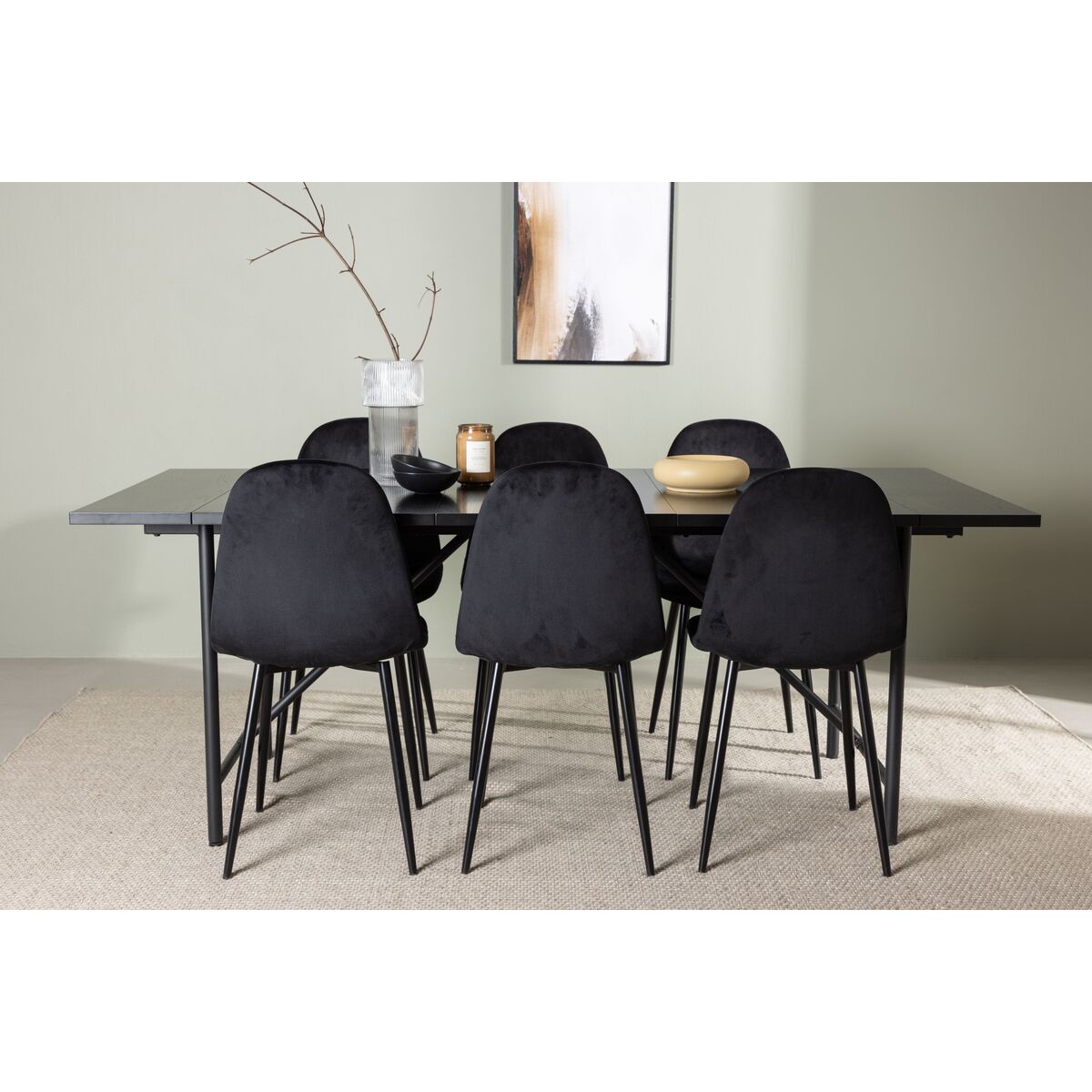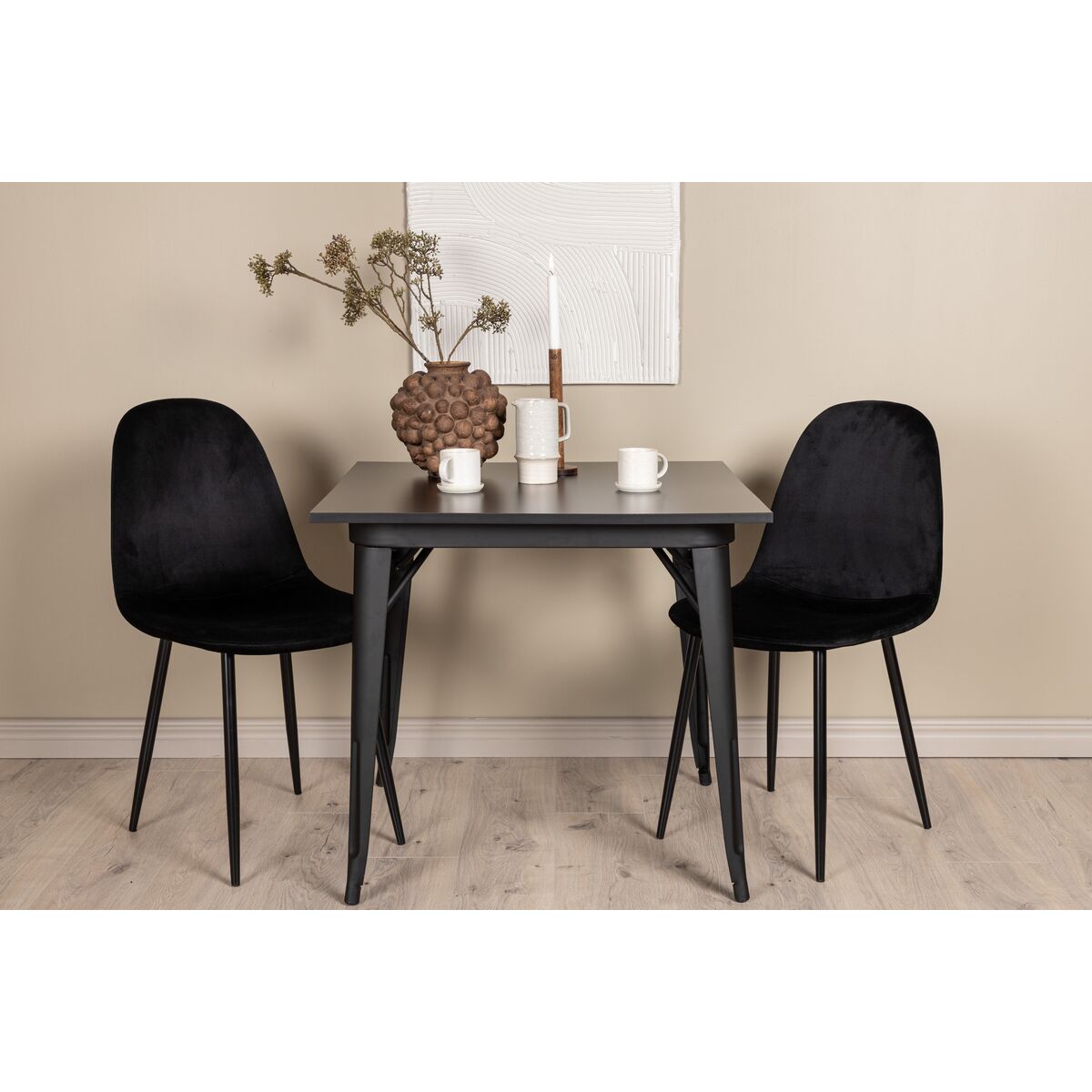Polar söögitool 2-pack Must + Ristkülikukujuline söögilaud 75 x 75 Must (GR24452)