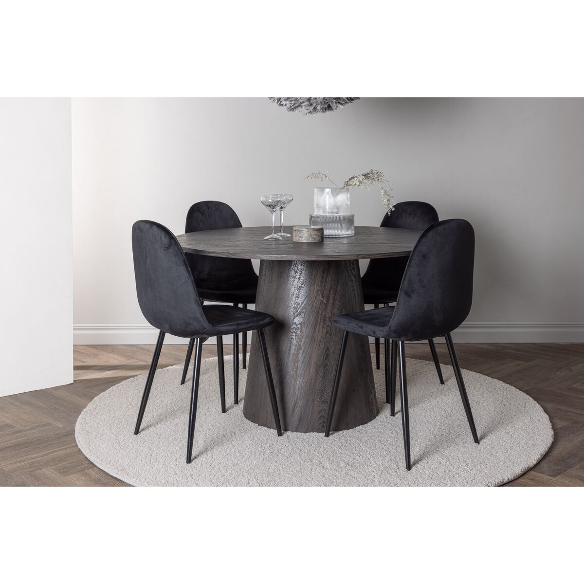 Polar & Plaza söögitoolide 2-pakk must + ümmargune söögilaud ⌀100 must