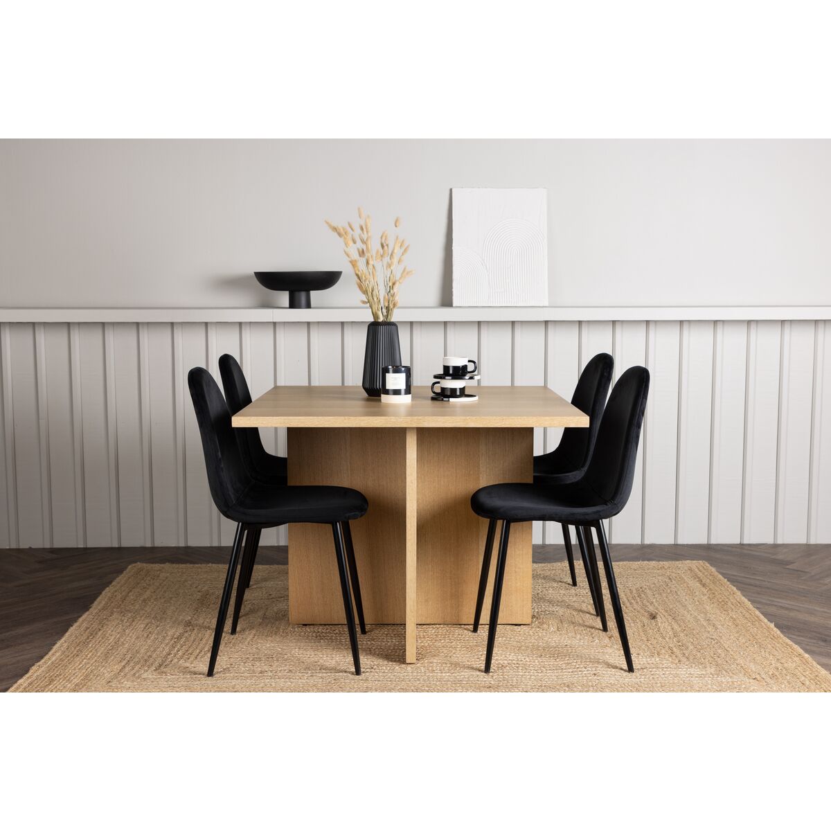 Polar & Leo söögitoolide komplekt 2-ne Pakend Must + Ristkülikukujuline Söögilaud 100 x 100 Naturaalne (GR23576)