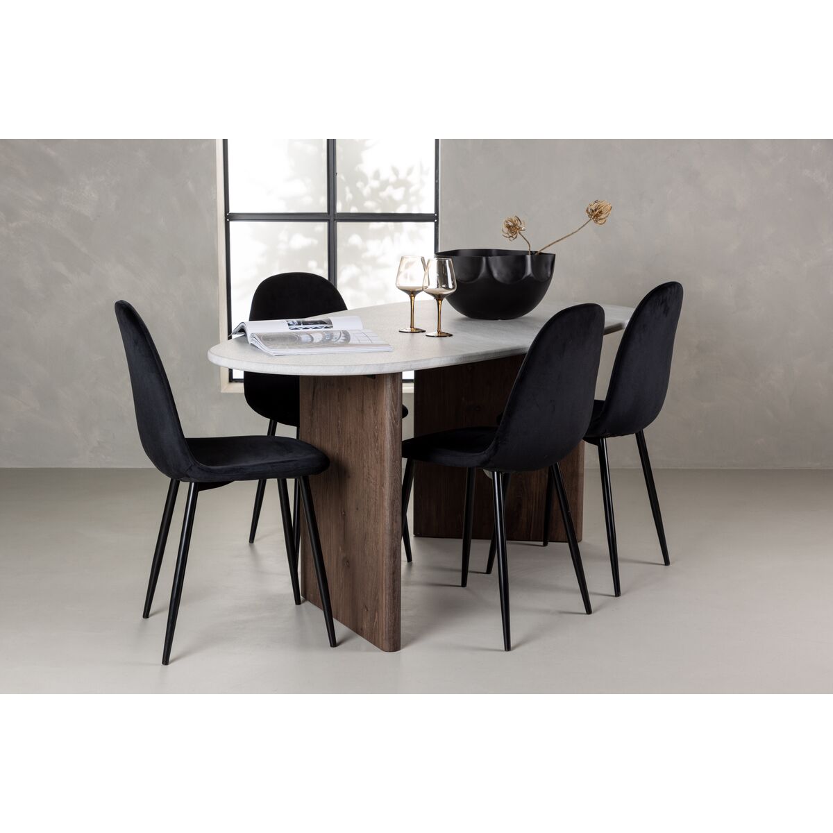 Polar & Isolde söögitoolid 2-pakis must + ovaalne söögilaud 180 x 90 must (GR23631)