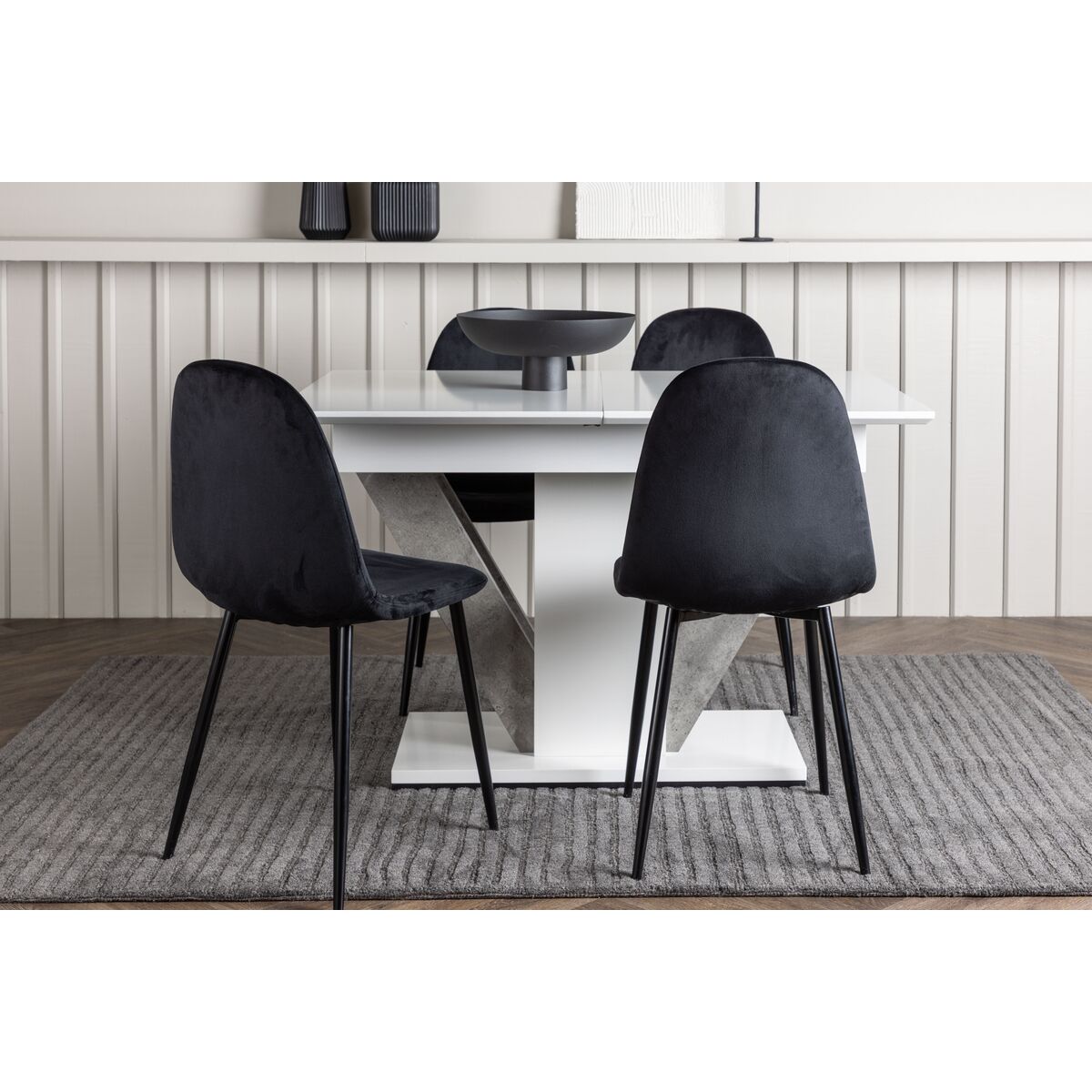 Polar & Pluto söögitoolide 2-pakk Must + Ristkülikukujuline söögilaud 120 x 90 Valge (GR23604)