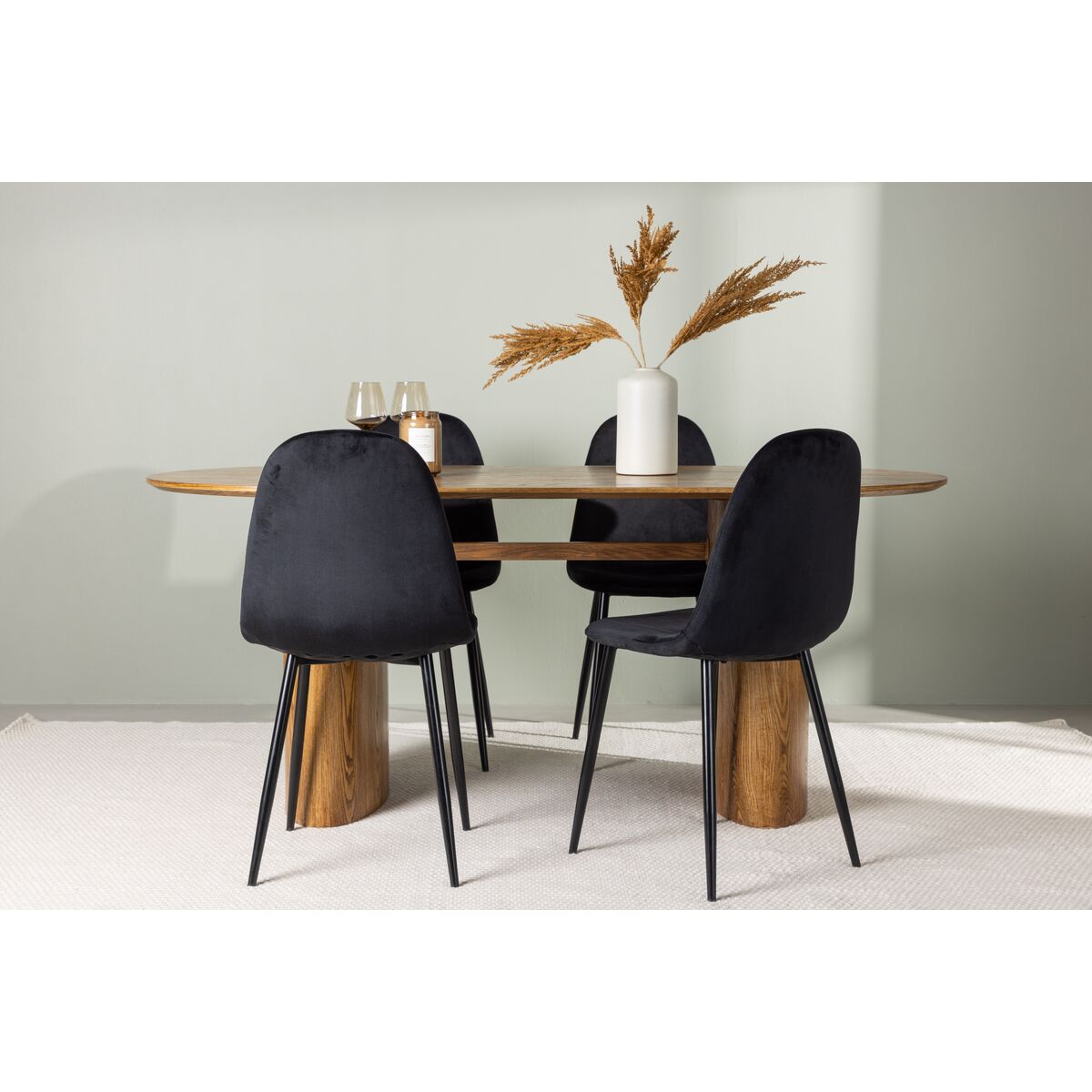 Polar & Isolde söögitool 2-pack Must + Ovaalne söögilaud 180 x 90 Naturaalne (GR23656)