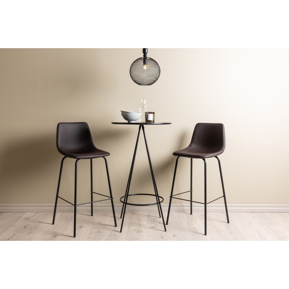 Alexi & Bistro Söögitoolide Komplekt 2 tk Pruun + Baarilaud ⌀60 Must (GR23688)