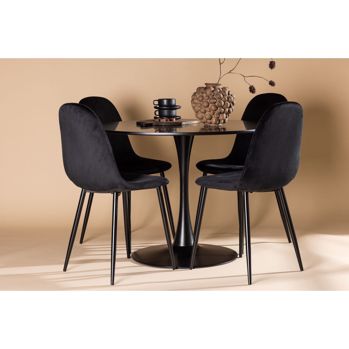 Polar & Plaza söögitoolide komplekt 2 tk must + ümmargune söögilaud ⌀120 beež (GR24410)